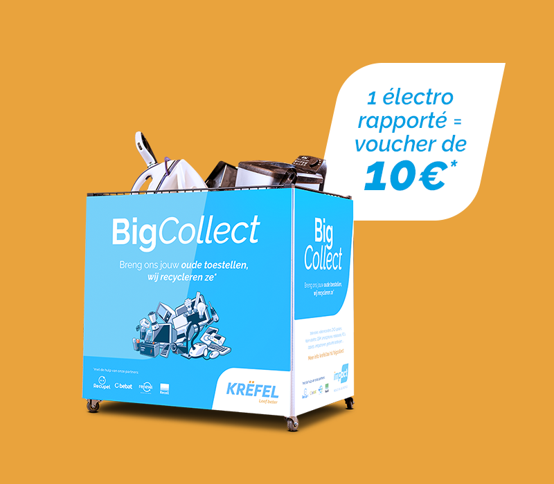 Vous avez des appareils inutilisés à la maison ? Chez Krëfel, ils valent de l'argent ! Apportez-nous vos vieux électros et profitez d'une remise de 10€ jusqu'au 31/03/2025. Nous collectons aussi votre ancien appareil lors d'une livraison à domicile. Dans ce cas, votre voucher vous sera envoyé quelques jours après via mail.