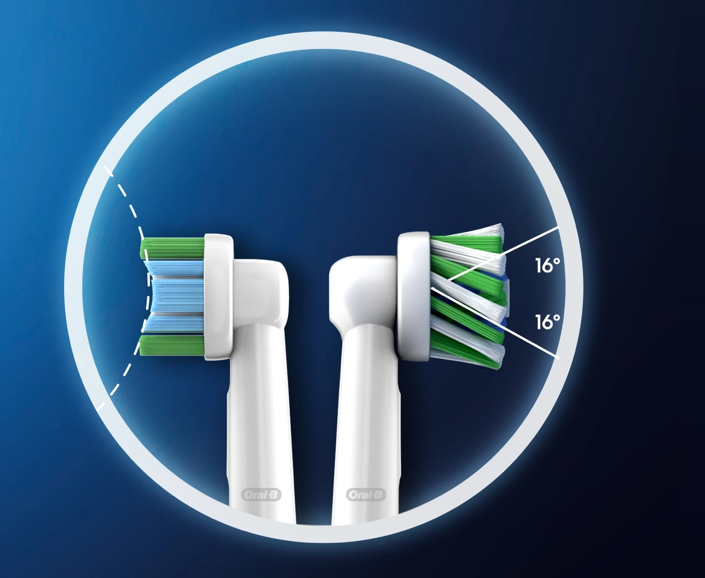 Geïnspireerd op professionele tandartsinstrumenten voor een tand-voor-tand reiniging. Hoek van 16 graden reinigt moeilijk bereikbare zones.