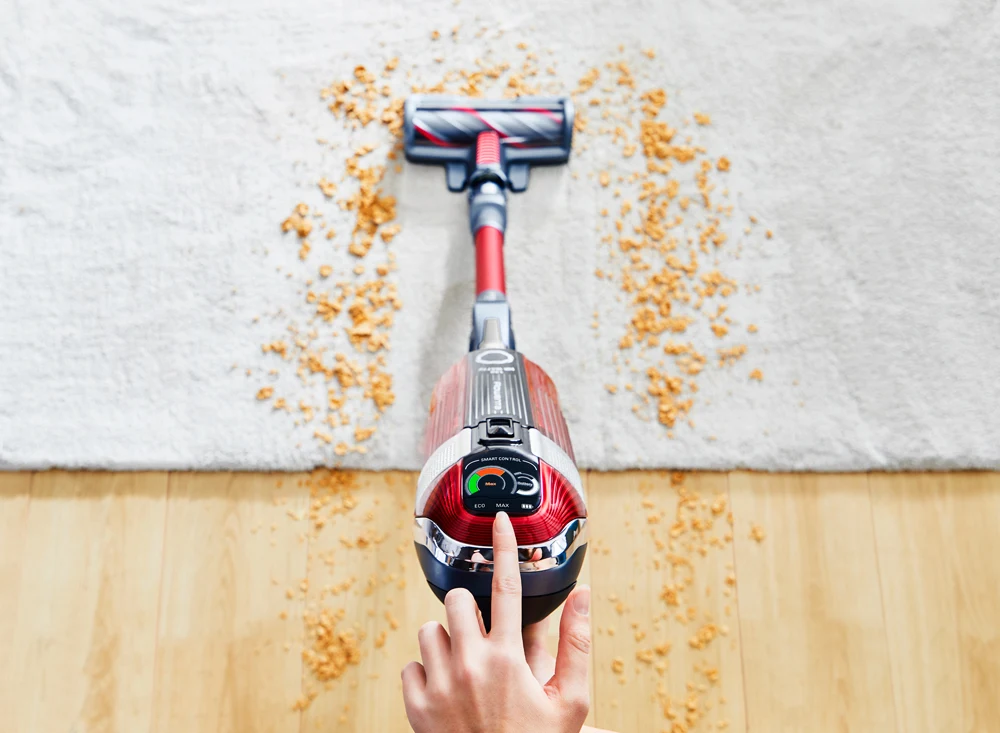Dankzij het bedieningsscherm houd je gemakkelijk het vermogen en het batterijniveau van je stofzuiger in de gaten. Hiermee bereik je een perfect evenwicht om je schoonmaaksessies te optimaliseren. De stofzuiger is uitgerust met 3 geavanceerde modi, waaronder de eco-modus.